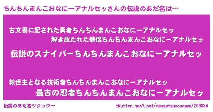 | ヒーロー風カッコイイあだ名 | 『スーパーチンチンマンコオナニーアナルセッ』 |