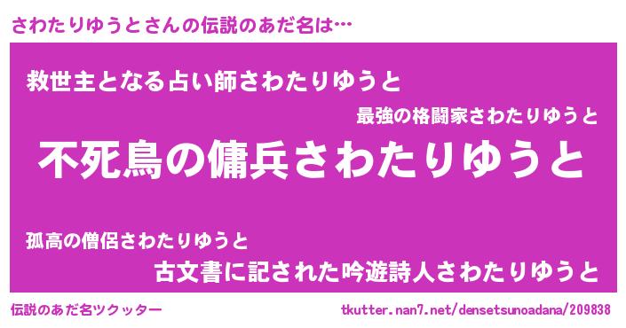 | ヘコむあだ名 | 『さわにゅー』『さわたりゆうと(笑)』 |