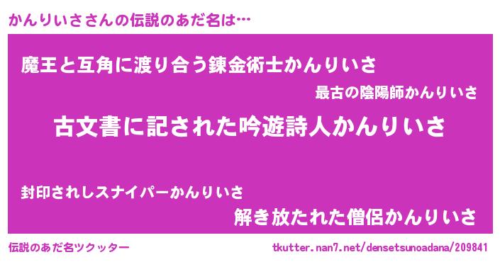 | ヘコむあだ名 | 『かんりいさ(笑)』『かんっぺ』 |