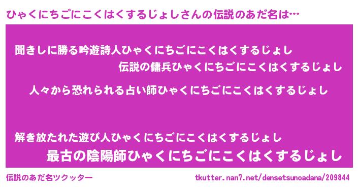| ヘコむあだ名 | 『ひゃくにちごにこくはくするじょし(笑)』 |