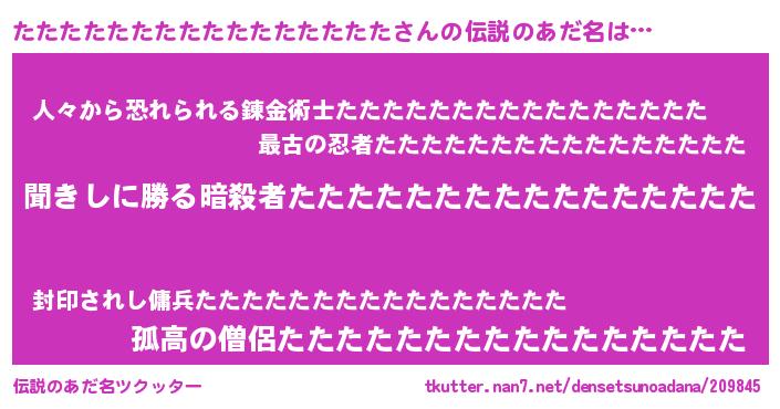 | 女子向けラノベタイトル風あだ名 | 『異世界で失敗しない100のたたたたたたたたたたたたたたたた』 |