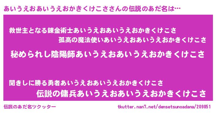 | 意味不明あだ名 | 『あいうえおあいうえおかきくけこさフォーエバー』 |