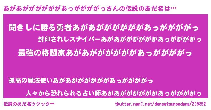 | ヒーロー風カッコイイあだ名 | 『最強戦士アガアガガガガガガアッガガガガッ』 |