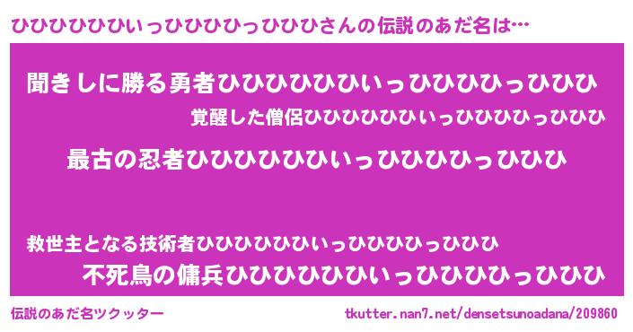 | ヒーロー風カッコイイあだ名 | 『サイバー戦士ヒヒヒヒヒヒイッヒヒヒヒッヒヒヒ』 |