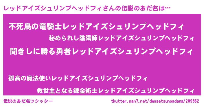 | ヒーロー風カッコイイあだ名 | 『ネオレッドアイズシュリンプヘッドフィ』 |