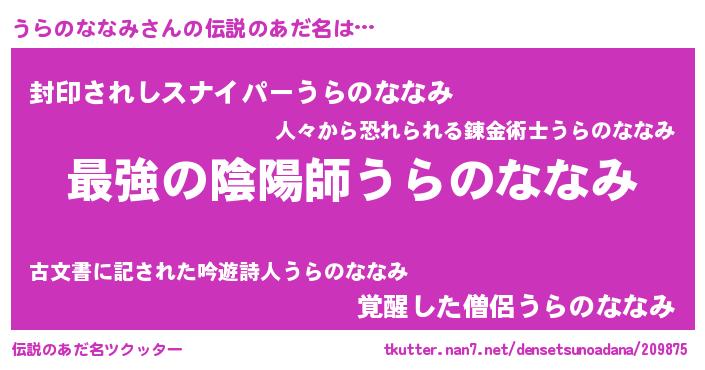 | ファンタジー風あだ名 | 『エターナルウラノナナミー』 |
