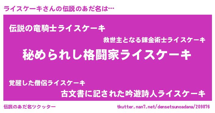 | 意味不明あだ名 | 『自称ライスケーキ』 |