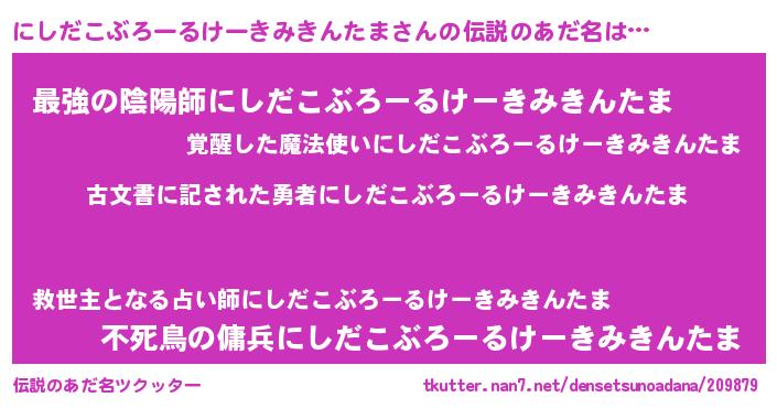 | ヘコむあだ名 | 『にしだこぶろーるけーきみきんたま(遠い目)』 |