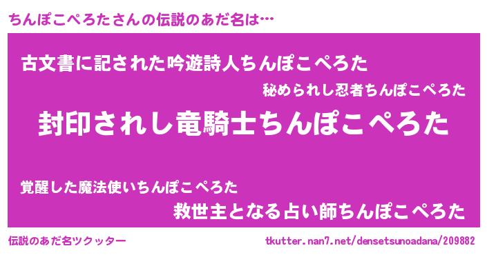 | 胡散臭い通販商品みたいなあだ名 | 『億万長者になれるブレスレット…その名も「ちんぽこぺろた」』 |