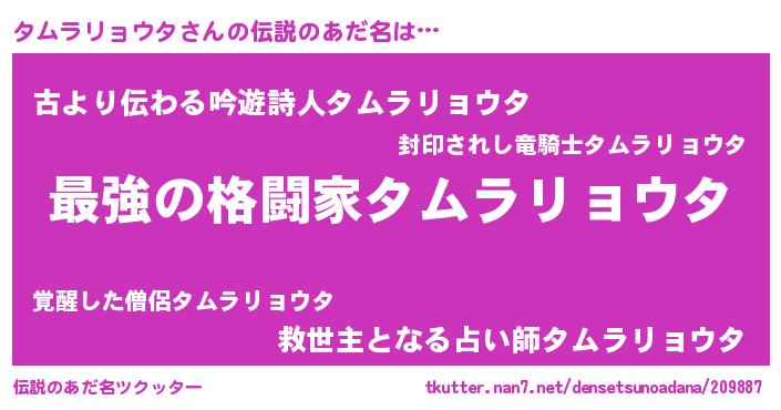 | ヒーロー風カッコイイあだ名 | 『ウルトラタムラリョウタマン』 |