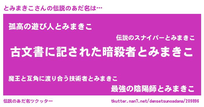 | ヒーロー風カッコイイあだ名 | 『ネオトミマキコ』『天弓騎士トミ』 |