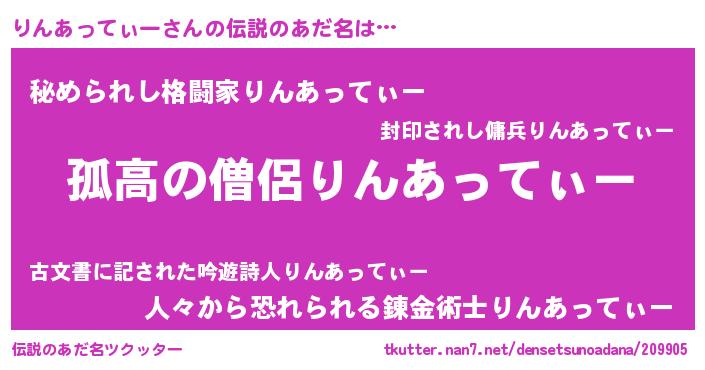 | 女子向けラノベタイトル風あだ名 | 『りんあってぃーなんてお断りですっ。』 |