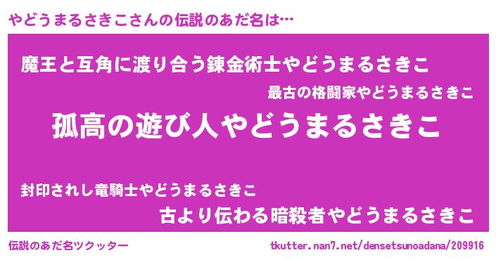 | 意味不明あだ名 | 『とにかく怪しいやどうまるさきこ』 |