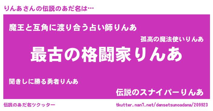 | 意味不明あだ名 | 『りんあフォーエバー』『ペロリンりんあ』 |