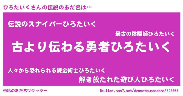| 意味不明あだ名 | 『住所不定無職ひろたいく(81歳)』 |