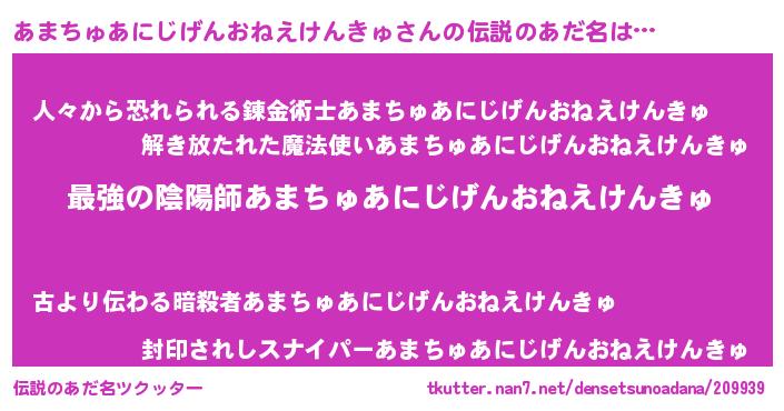 | 意味不明あだ名 | 『あまちゅあにじげんおねえけんきゅフォーエバー』 |