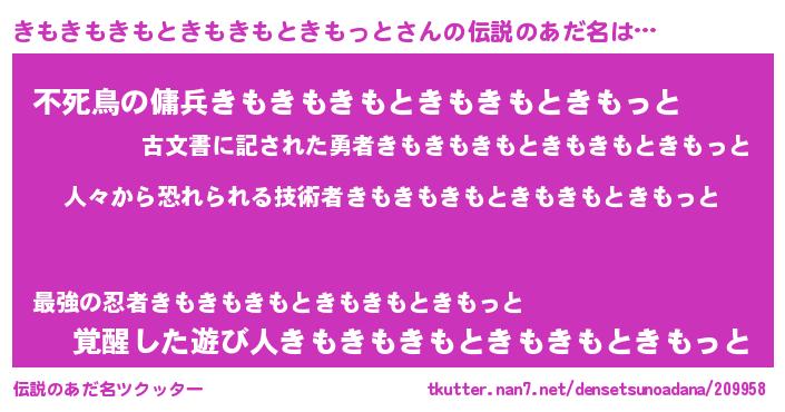 | 男性向けラノベタイトル風あだ名 | 『おまえをオタクにしてやるから、俺をきもきもきもときもきもときもっとにしてくれ! 』 |