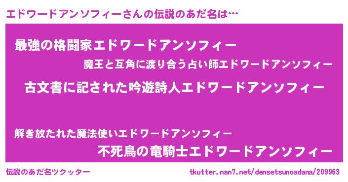 | ヘコむあだ名 | 『エドワードアンソフィー(小並感)』 |