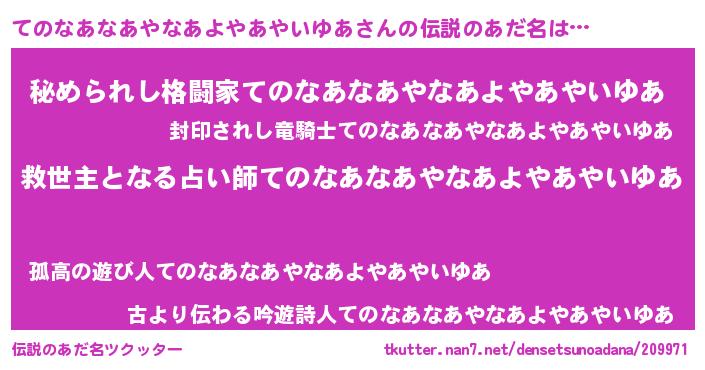 | ヒーロー風カッコイイあだ名 | 『天空の使者てのなあなあやなあよやあやいゆあ』 |
