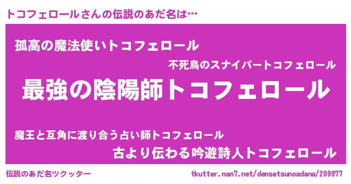| 意味不明あだ名 | 『自称トコフェロール』 |