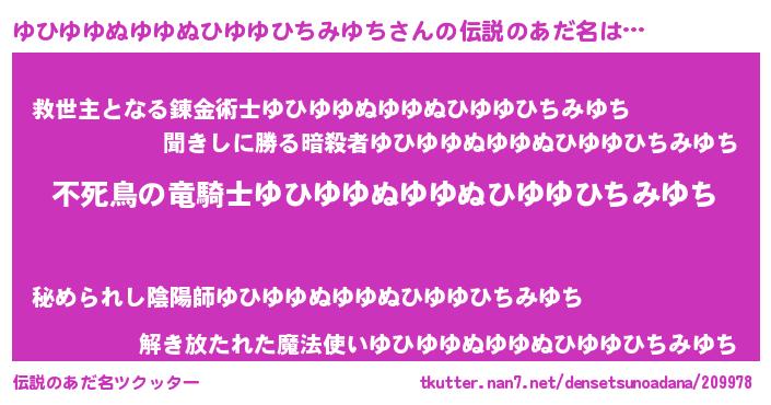 | ヒーロー風カッコイイあだ名 | 『スーパーユヒユユヌユユヌヒユユヒチミユチ』 |