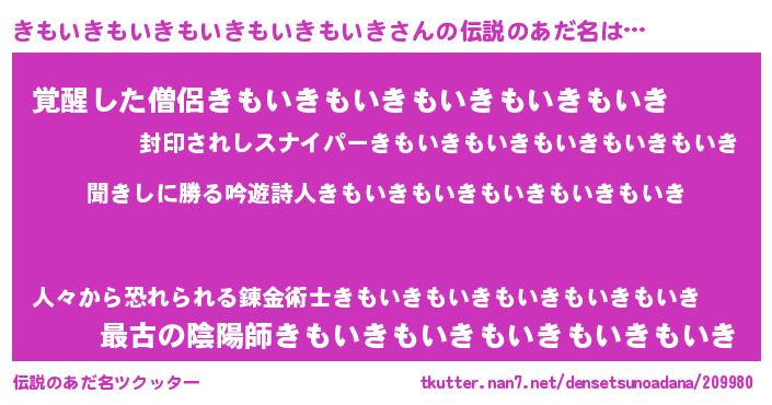 | ヘコむあだ名 | 『きもいきもいきもいきもいきもいき(小並感)』 |