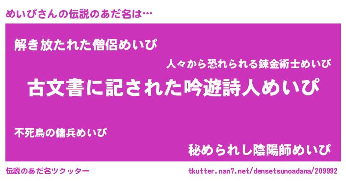 | 意味不明あだ名 | 『住所不定無職めいぴ(3歳)』 |