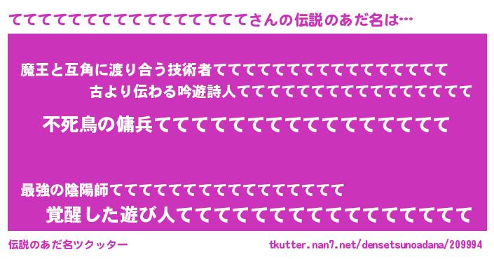 | 男性向けラノベタイトル風あだ名 | 『テテテテテテテテテテテテテテテテアートオンライン』 |