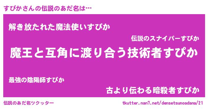 | 女子向けラノベタイトル風あだ名 | 『横柄すぴかと宰相陛下』『すぴか恋絵巻』 |