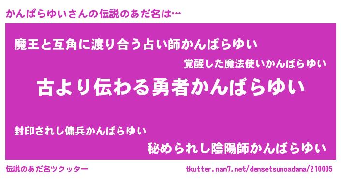 | 意味不明あだ名 | 『住所不定無職かんばらゆい(93歳)』 |