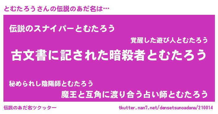 | 男性向けラノベタイトル風あだ名 | 『誰もが恐れるあのとむたろうが、ぼくの専属メイドになるようです。』 |