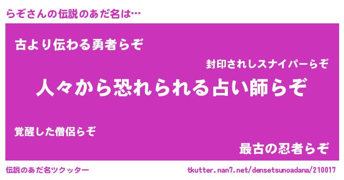 | ヒーロー風カッコイイあだ名 | 『友情の使者らぞ』『ネオラゾ』 |