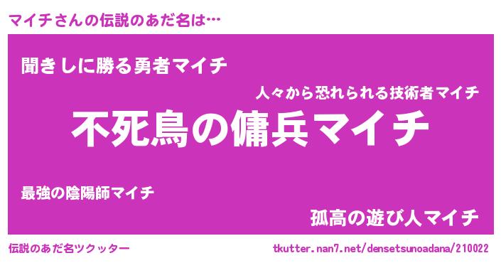 | ヒーロー風カッコイイあだ名 | 『スーパーマイチ』『超時空戦士マイチ』 |