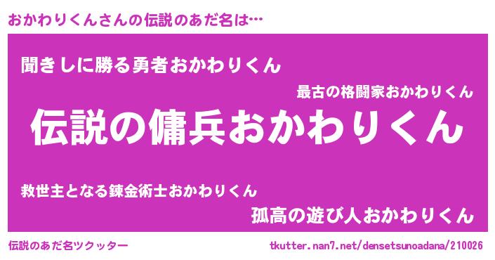 | ヒーロー風カッコイイあだ名 | 『スーパーオカワリクン』『幻影騎士オカ』 |