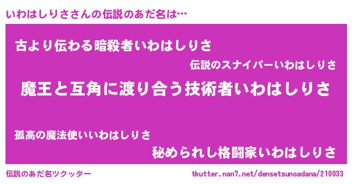 | ヒーロー風カッコイイあだ名 | 『愛の使者いわはしりさ』 |