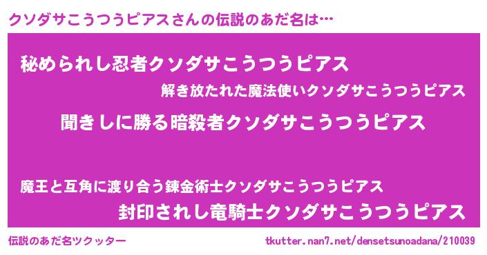 | 意味不明あだ名 | 『永久保存クソダサこうつうピアス』 |