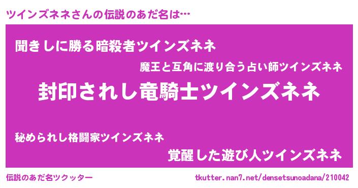 | 意味不明あだ名 | 『自称ツインズネネ』 |