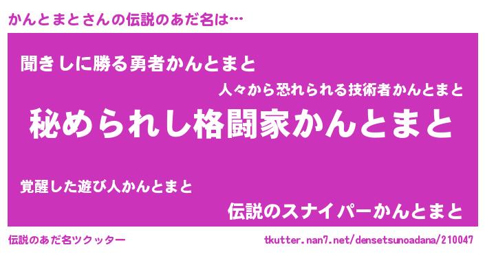 | ファンタジー風あだ名 | 『エターナルカントマトー』『ゼカントゥ』 |