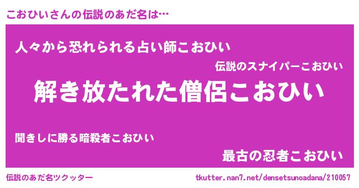 | ヒーロー風カッコイイあだ名 | 『幻影騎士コオ』『仮面コオダー』 |