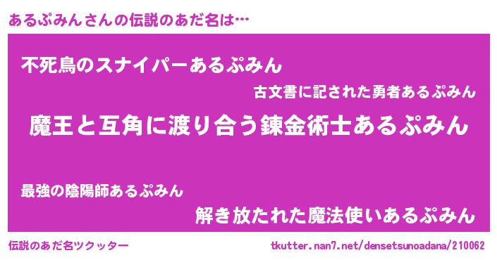 | 男性向けラノベタイトル風あだ名 | 『はたらくあるぷみんさま!』 |