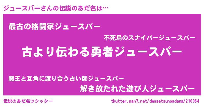 | ヒーロー風カッコイイあだ名 | 『ネオジュースバー』『魔戒騎士ジュ』 |