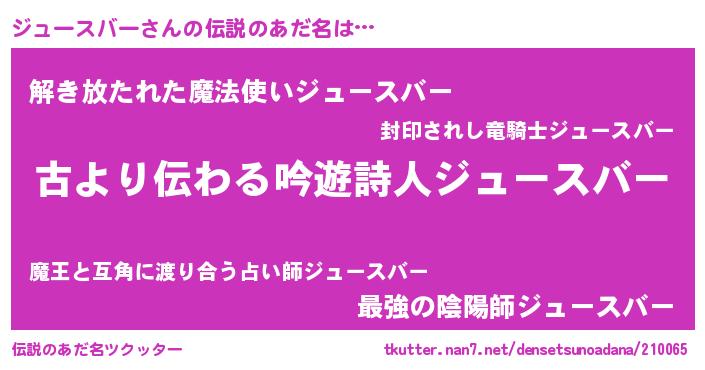 | 意味不明あだ名 | 『永久保存ジュースバー』 |