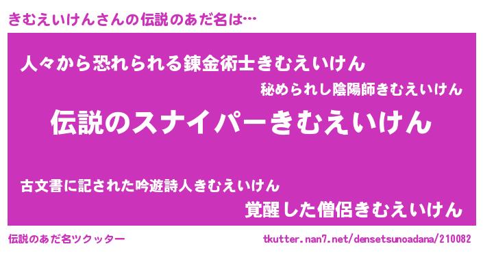 | 胡散臭い通販商品みたいなあだ名 | 『必ず成功する霊験あらたかなお札…その名も「きむえいけん」』 |
