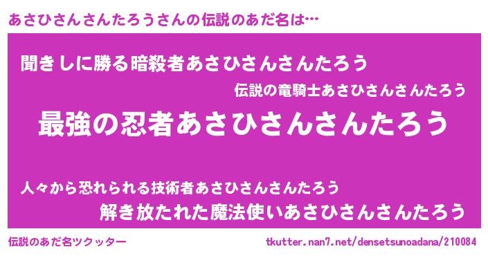 | ヒーロー風カッコイイあだ名 | 『究極戦士アサヒサンサンタロウ』 |