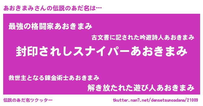 | 胡散臭い通販商品みたいなあだ名 | 『億万長者になれる霊験あらたかなお札…その名も「あおきまみ」』 |
