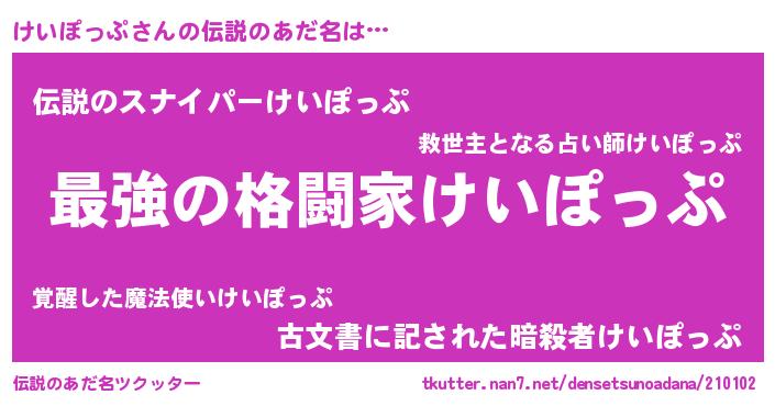 | 意味不明あだ名 | 『けいぽっぷフォーエバー』 |