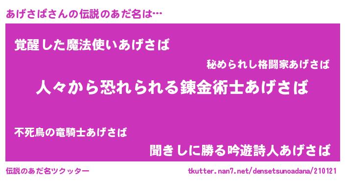 | ヘコむあだ名 | 『あげぷりん』『あげさば(小並感)』 |