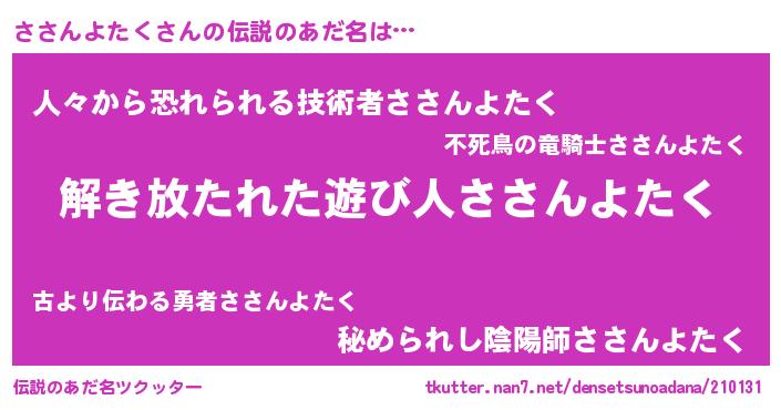 | 意味不明あだ名 | 『自称ささんよたく』 |