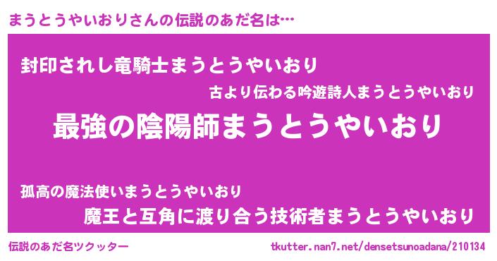 | 意味不明あだ名 | 『まうとうやいおりフォーエバー』 |