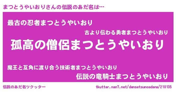 | 意味不明あだ名 | 『自称まつとうやいおり』 |